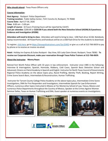 Do you have an upcoming training to promote, but don't know where to go? Contact us via email at: wjs803@yahoo.com. Be sure to send us all of the relevant information about the course, date, time, location, as well as any jpgs.